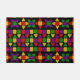 Diese Türmatte hat ein Schwarzes Geschichtsbild von Blume und Zeilen aus Dreiecken und Rechtecken.