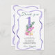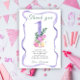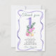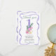 Einladungskarte zum Geburtstag mit Aquarellbild Nummer eins mit wilden Blume und lila Band.