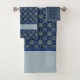 Blume mit Teppichboden Ein Set mit Flachbild-Badetüchern. Einfache Blume, eingebettet in Kacheln von Königsblau, in einem Meer von aquamarinen nahtlosen Mustern, um Ihr Dekor im Zuhause-Bad zu verbessern. Handtücher sind ein schicker und stilvolles Accent Accent Accent, der Ihnen hilft, Ihr Farbschema und den Stil des Haupt-, Gast- oder Master-Badezimmer zu ergänzen. Ich würde mich freuen, wenn ich mit Ihnen im Hinterkopf zurückblicken, tint, oder Design, einfach nur sagen, ich fange an.