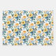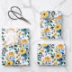 Ein Trio von gelben floralen Wasserfarben wilde Blume und blaue Rose umgeben von grünen Blattsprigs und gelben Blütenknospen Set auf einem weißen Hintergrund, der in jede beliebige Farbe geändert werden kann. Sie sind ideal für Brautparty, Jubiläum, Verlobung und Hochzeitsfeiern und Veranstaltungen.