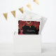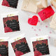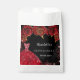 Für eine Quinceañera, 15. Geburtstagsparty. Ein schwarzer Hintergrund mit roten Imitaten goldener Glitzer, Glitzern, ein rotes Kleid und rote Rosen, Blumenmuster. Der Name ist mit einem modernen handgeschriebenen Stilskript geschrieben. Personalisieren und fügen Sie Ihren Namen und ein Datum.