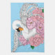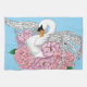 Ein weißer Schwan, umgeben von rosa Blume und einem blauen Hintergrund