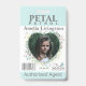 Personalisieren Sie die Blütenpatrouille Agent Abzeichen mit Dankeschön Notiz und herzförmigen Rahmen mit blühend Akzenten für Ihre Blume Mädchen.Foto.