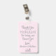 Personalisieren Sie die Blütenpatrouille Agent Abzeichen mit Dankeschön Notiz und herzförmigen Rahmen mit blühend Akzenten für Ihre Blume Mädchen.Foto.