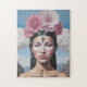 Surrealistisches Frauenportrait mit einer Blume-Kopfzeile