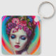 Ein wunderschönes Jugendstil-Portrait einer Frau in einem Hut aus Blume, umgeben von einer Regenbogenaura. Es wäre eine schöne Ergänzung zu einem Boudoir oder einem Mädchenzimmer.