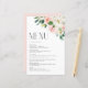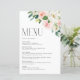 Mit dieser benutzerdefinierbaren Menükarte fügen Sie Ihrem Event-Tischdeck einen Blumenakzent hinzu. Freuen Sie sich auf ein Aquarellbouquet aus Rosen, Rosa, Weiß und Peonies. Personalisieren Sie diese, indem Sie Ihre Daten hinzufügen. Diese Blumenkarte eignet sich hervorragend für Frühjahrsfeiern, Babyduschen, Brautpartys, Geburtstage und vieles mehr.