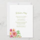 Die Einladung zur Blumenstuhlfeier in Aquarellfarben hat ein rosa, korallenfarbenes und grünes Farbschema. Sie können ein Foto des Abschlusses an die Vorderseite der Einladung hinzufügen und Sie können auch die Klasse des Jahres, den Namen des Absolventen und die Schule, von der sie geschlossen werden, personalisieren. Die Rückseite hat das gleiche Blumendesign am unteren Rand links mit dem Party in der Mitte, dass Sie leicht anpassen können.