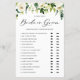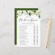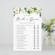 Rate mal, wer es gesagt hat! War es die Braut oder der Bräutigam? | Fügen Sie diese lustige und spielerische Brautparty Er sagte, sie sagte Spielkarte zu Ihrer Veranstaltung. Diese benutzerdefinierbare Bride- oder Groom-Spielkarte bietet Aquarellbilder für weiße Blume und Grünpflanzen. Personalisieren Sie diese, indem Sie Ihre Fragen hinzufügen. Dieses weiße Brautparty mit einer Spielkarte eignet sich ideal für Brautpartys und Polterabende im Winter und Frühjahr.
