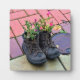 Als ich die Straße in Oconomowoc entlangging, sah ich diese alten Stiefel als Pflanzer. Sehr gepflegte Gartendekoration! Foto wurde im Oktober 2014 aufgenommen.