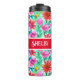 Blume in Aquamarin, rot und rosa Thermosbecher