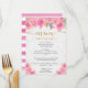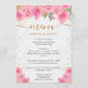 Aquarellpinke Blume mit goldfarbenem Foil-Design und blumenweißem Lehnmuster im Hintergrund