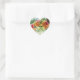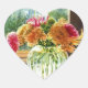 Ein hübscher Bouquet mit Blume in Rot, Orange und Gelb, der in einer Kristallvase auf einem Tisch am Fenster angeordnet ist. Die traumhafte, waldbedeckte Szene durch das Fenster bildet den Hintergrund für dieses entspannende Bild. Von einer originalen Aquarellfarbe der Künstlerin Katherine Foltuz.