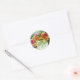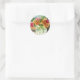 Ein hübscher Bouquet mit Blume in Rot, Orange und Gelb, der in einer Kristallvase auf einem Tisch am Fenster angeordnet ist. Die traumhafte, waldbedeckte Szene durch das Fenster bildet den Hintergrund für dieses entspannende Bild. Von einer originalen Aquarellfarbe der Künstlerin Katherine Foltuz.