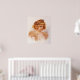Viktorianisches Kind mit Kranz aus rosa Blume auf ihrem lockigen Haar. Weiche Pastellkleidung in Rosa mit Spitzen-Ärmeln vervollständigt die reizvolle Vintage Illustration.