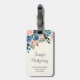 Gepäckanhänger mit hübschen, rosa und blauen Rose und grünen Blätter. Set auf hellgelbem Hintergrund.