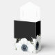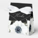 Zehnt gezimmerte Gefälligkeitsboxen mit Farbbandverschluss sind mit eleganten Blume in Aquarellweiß und Schwarz, Blätter auf schwarzem Hintergrund und den Details in schicken Schriftzeichen versehen. PASSENDE Artikel in unserem Geschäft.