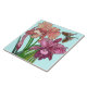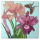 Hübsche Keramik mit Blumenziegel aus lackierten Blume. Farbenfrohe Iris und Schmetterling auf einem coolen Minzhintergrund. Verwenden Sie als Trivet, oder eine Touch von Farbe auf einem Regal oder Zähler.