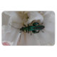 Dieser phantastische Magnet zeigt ein Foto einer bläulich-grünen britischen Ölkäfer, die auf einer weißen Carnation-Blume sitzt. Das Foto wurde mit Makrofotografie aufgenommen, um die Details und die Farbe dieser wunderschönen Käfer-Art zu zeigen.