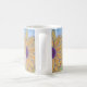 Schön ist einfach diese übergroße Blume, die mit Goldblättern und einem lila gepunkteten Zentrum bemalt ist und ein interessantes Design für eine "gute morgendliche" Tasse Ihres Lieblingsgetränks darstellt, ein gemischtes Medienwerk der Kunst.