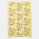 Dieses Küchentuch ist in einem schönen rosa und gelben Blumendruck ausgestellt. Farbe Gelb Passen Sie dieses Objekt an oder kaufen Sie es wie gezeigt. Börsenbild freepik.com