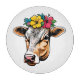 Niedliche Kuh mit Blume auf dem Kopf.