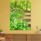 Wilde Knoblauch und Bluebells, die durch den Wald führen, Preston, Lancashire