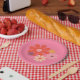 Blume Locus Retro Minimalistisches Blumenmuster in sehr rosa Rot-Orange Lila Senf. Vintage minimale Ästhetik. 60er 70er vibe. Niedlicher, fröhlicher, hübscher, nostalgischer Power aus den 1960er Jahren mit hellrosa. Von Kierkegaard Design Studio.