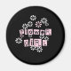 Hübsche Blume Mädchenknöpfe, Magnete, Mousepads, Karten und mehr mit schwarzem Hintergrund, weißem Text, rosa und weiße Blume.