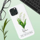 Eine Illustration der Lilie der Blume des Tals. Unter den Blume wird der Name in einem anmutigen Skript-Schriftart geschrieben. Unter dem Namen Staaten sie "Mai - Lily of the Valley", was darauf hinweist, dass ihr Geburtsmonat May ist und ihre Geburtswehen die Lilie des Tales sind. Es ist ein personalisierter Telefonkoffer, der als nachdenkliches Geschenk für jemanden geboren im Mai angepasst wurde.