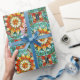 Helles und fröhliches Buntglas-Design aus farbenfrohen Blumenmandala als sich wiederholendes Muster.