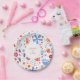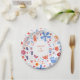 Moderne botanische Aquarellmalerei mit blauen und orangen wilden Blume auf weißem Hintergrund. Koordination hübscher Teller mit Texten, die zu Anzug Ihrer Feier verändert werden können.