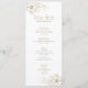 Weiße Blume mit falscher Kontur, Eckleiste auf weißem Hintergrund. Anpassbare Hochzeitsmenü Textvorlage.
