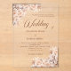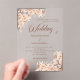 Eine moderne, stilvolle und romantische Einladung für eine Hochzeit. Klarer, transparenter Hintergrund. Cremefarbene, beige Blume. Personalisieren und fügen Sie Ihre Namen und die Details.