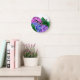 Blume mit Blauer und Rosa Hydrangea Runde Wanduhr