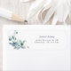 Einfaches, elegantes und elegantes Retourenlabel mit hübschem Aquarellbild, lila blauen grauen Blume.