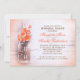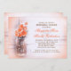 Rustikale Holz Probe Dinner Einladungen mit pfirsichfarbenen Blume Mason Glas.