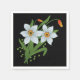 Schönes Bouquet mit bunten Frühlingsblumen, gelben Tulpen und weißen Narzissen auf schwarzem Hintergrund.