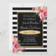 Diese atemberaubende und eindrucksvolle Hochzeitseinladung mit fett-schwarz-weißen Streifen mit Goldverzierung und rosa und rot-fuschia-Blume. Die Blume und Rose Pop raus und singen wunderschön auf dieser wunderschönen Hochzeitseinladung.