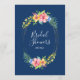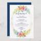 Helle tropische Blume mit blauen Rosa- und Gelbblumen, die mit einem ovalen Rahmen aus modernem vergoldetem Draht hervorgehoben sind. Hochzeit oder Braut zeigte Menüvorlage.