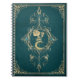 Ein zauberhaftes Grimoire-Notizbuch-Design mit einem Mond, einer Rose und Ornamenten.