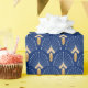 Deko-Fan-Blume aus blau, gold und weiß. Das Design ist mit einem Blume-Muster im Gatsby-Stil der 1920er Jahre ausgestattet.