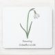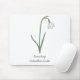 Ein Mauspad mit botanischer Snowdrop-Blume in Pastellfarben und einem anpassbaren Text am unteren Rand: perfekt für ein Geburtstagsgeschenk an ein Mädchen, das Blume Liebe. Snowdrop ist die Blume der Geburt im Januar und die Blume von Capricorn.