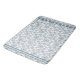 Eine künstlerisch schiefergraue kreisblaue Blütenbadematte mit einer schönen Symmetrie und einem wiederholten blauen Linienrand. Ein einfaches, modernes, abstraktes geometrisches Muster.