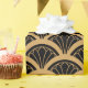Deko-Fischskala und Fan-Blume-Muster aus Gold und Schwarz. 1920 Stil Great Gatsby inspiriert Muster.