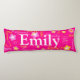 Niedlich rosa, gelb und weiß gemustert 5 Buchstaben personalisiertes Kissen. Passen Sie mit Ihrem eigenen Namen derzeit liest Emily. Die Hintergrundfarbe kann auch geändert werden, wenn dies momentan rosa erforderlich ist. Ein perfektes Geschenk für Mädchen. Original Kunst und Design von Sarah Trett exklusiv für www.mylittleeden.com nur auf Zazzle.
