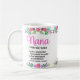 Diese trendige und stilvolle Tasse mit Blumenmotiven, die den Tag der glücklichen Mutter in rustikaler, handgeschriebener Form verkörpert, besticht durch ein Aquarellbouquet aus Rose, Blätter und Blume in hübschen Farbtönen Rosa und Grün für ein Geschenk an Ihre Mutter