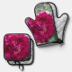 Ein Ofenhalter mit Mitt und Topf mit einem Foto einer roten Pony.