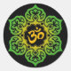 Blume Om auf schwarz, gelb und grün Runder Aufkleber