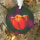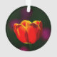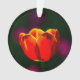 Rote Tulpe-Blume vor dunkelgrünem Hintergrund und rosa, verschwommene Flecken anderer Tulpe-Blume. Boul des Feuers, Kugel des Live-Sonnenlichts. Das Symbol des neuen Lebens. Shine, beleuchten, bestrahlen und inspirier!